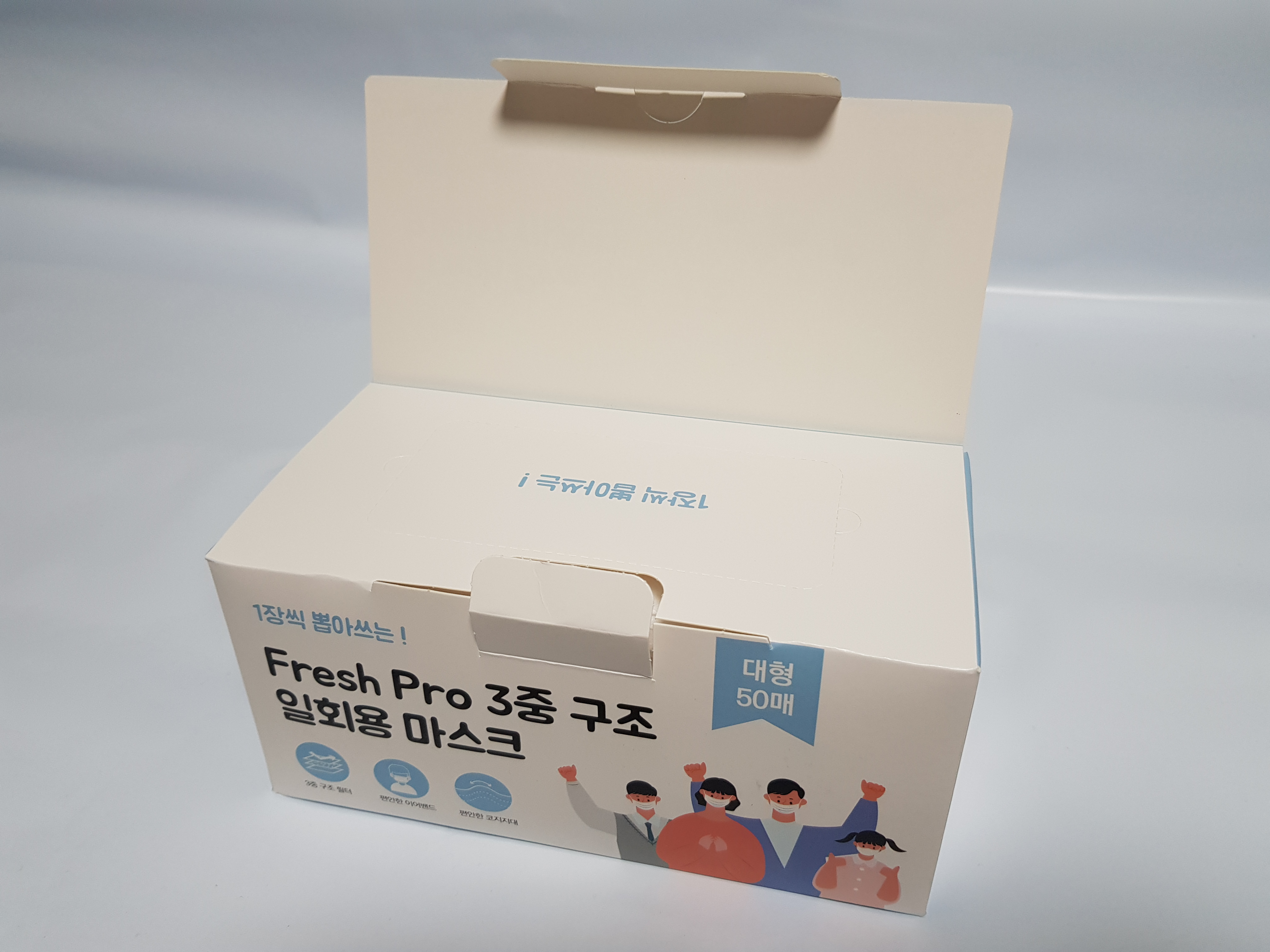 종이케이스를 열어보면 화이트 색상의 마스크가 저렇게 들어있습니다.