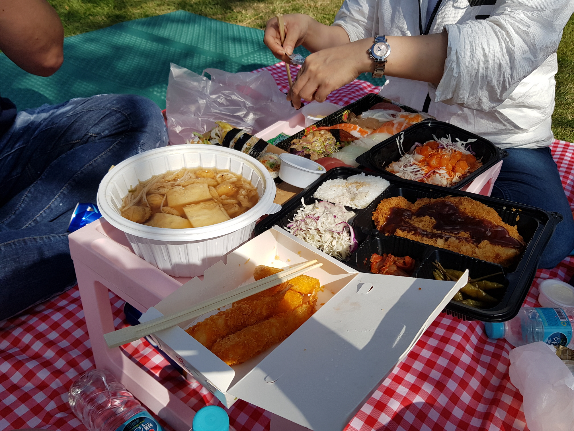 밖에서 강바람을 쐬며 먹는 도시락의 맛! 개꿀~