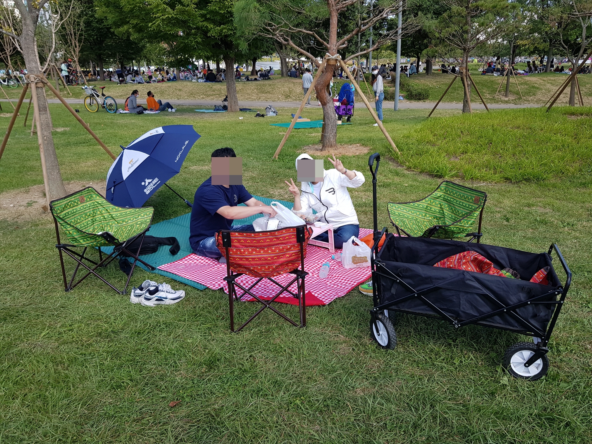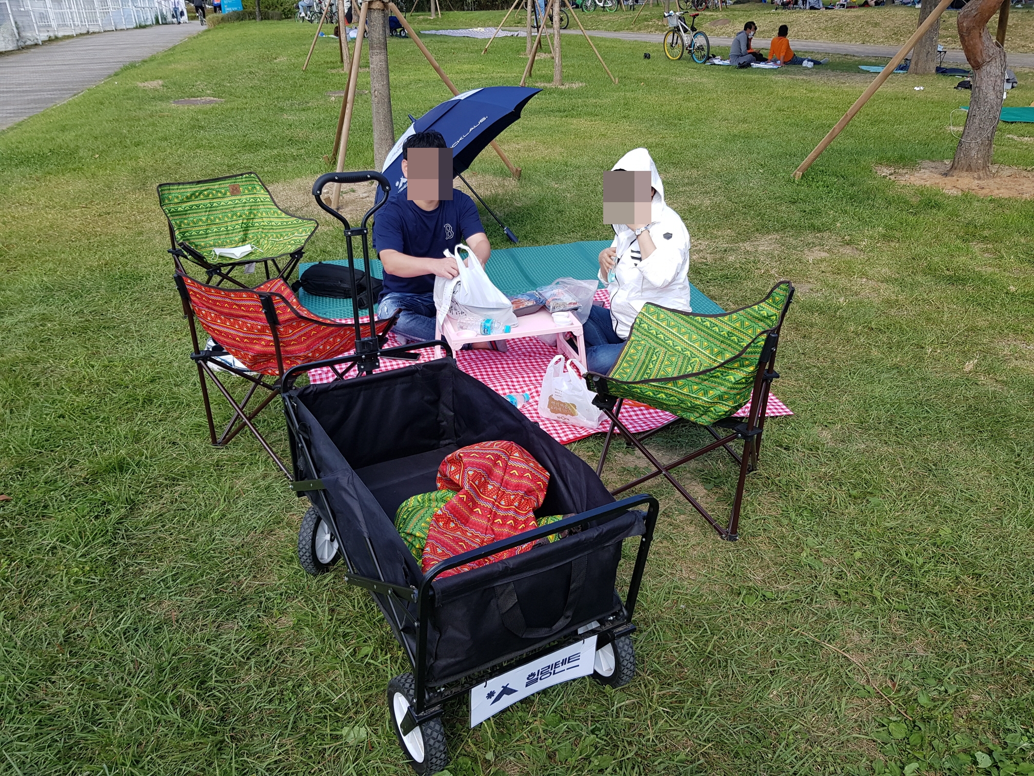 요즘은 의자나 파라솔, 돗자리 같은걸 공원 입구쪽에서 대여를 해주니까
