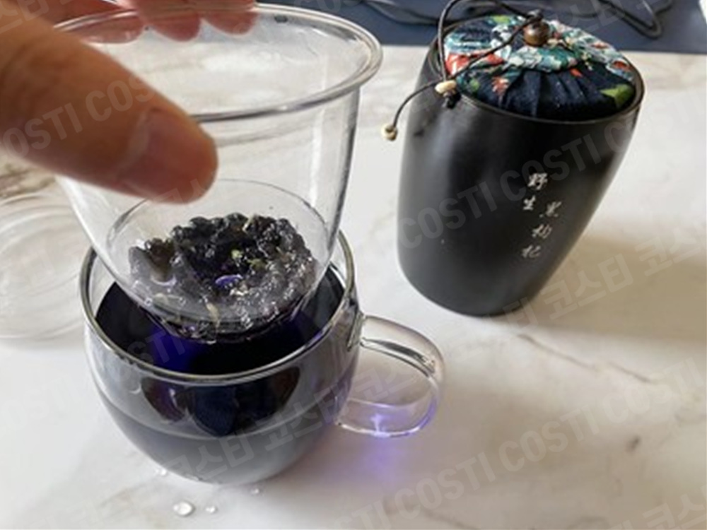 [안내사항] 흑구기자차의 특성상 물의 pH에 따라서 우러나는 색상이 달라집니다. 보통 수돗물에는 푸른색을 띠고, 생수에서는 자줏빛을 띱니다.