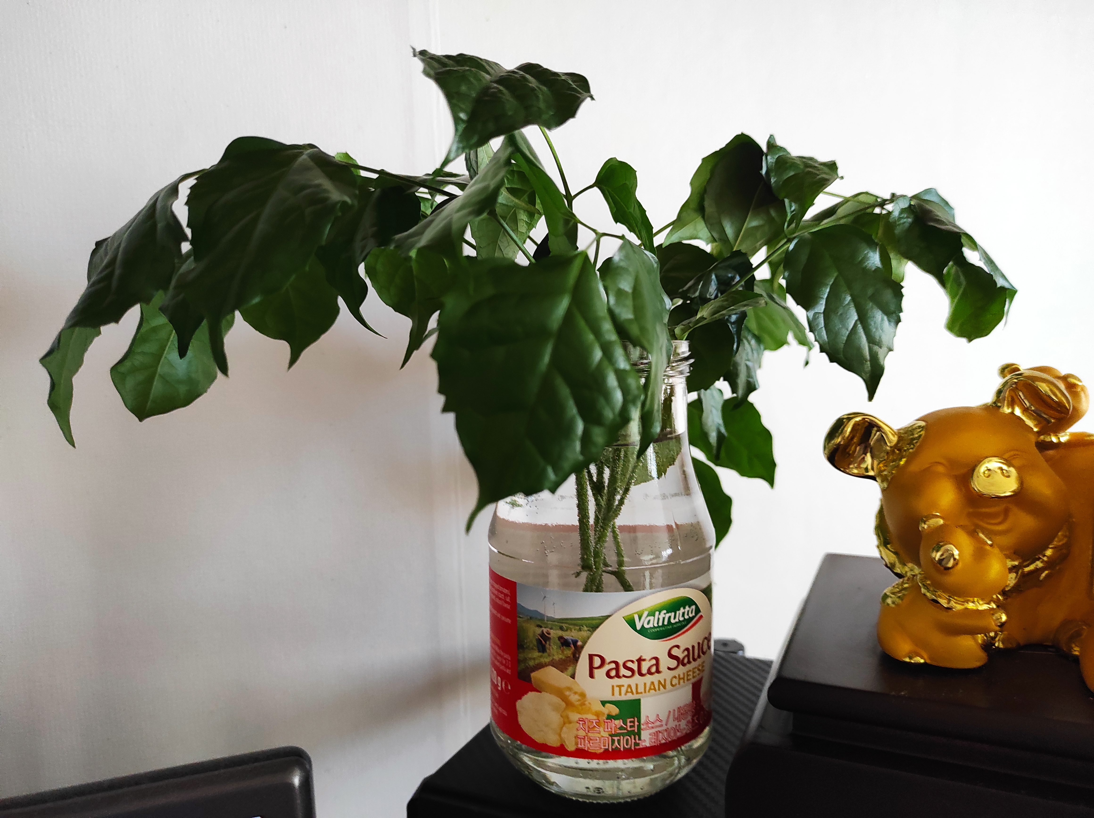 가지 친 거 버리기엔 아까워서 삽목 해보려고 설탕 조금 희석한 물에 담가놔 봄.