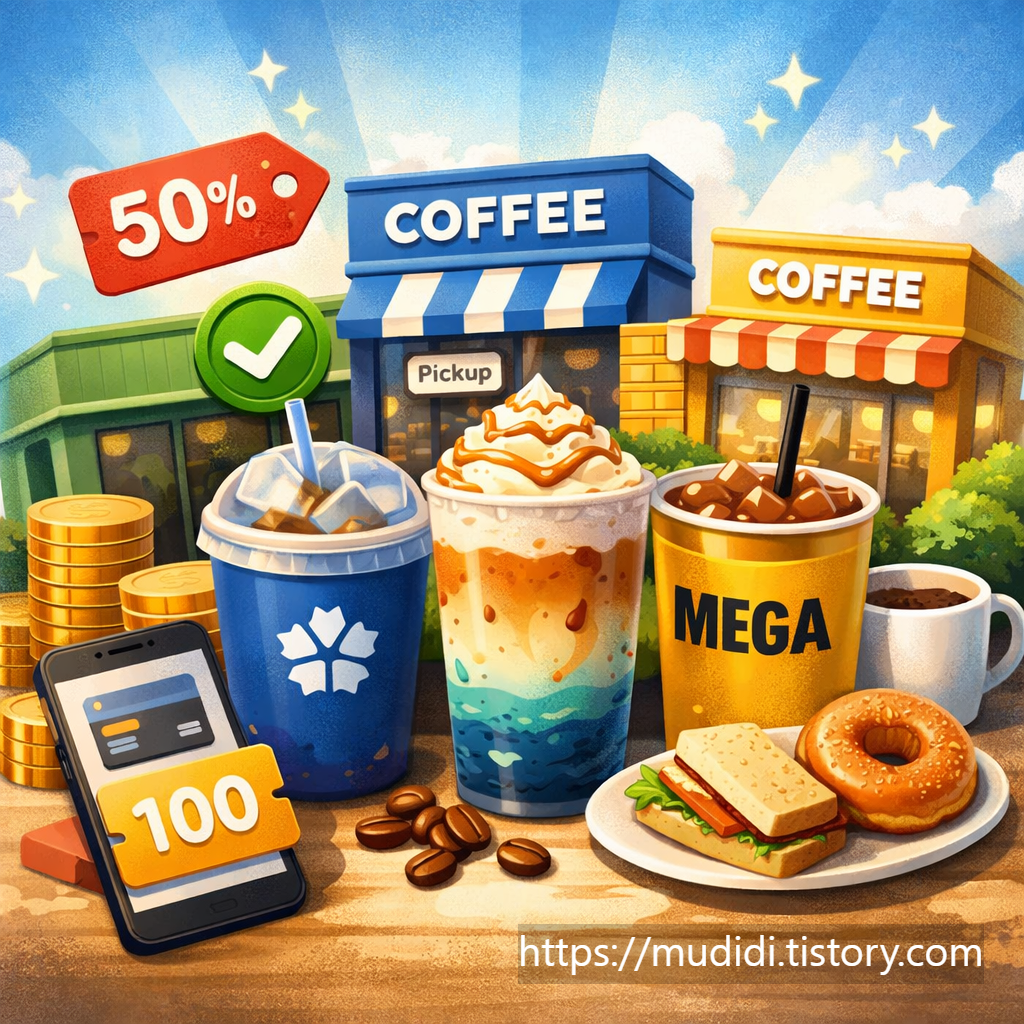 요즘 커피값이 많이 올라서 하루 한 잔도 부담스러운 시기가 됐다. 그래서 나는 평소에 할인 이벤트나 적립 혜택을 자주 챙기는 편이다. 이번 주에는 네이버페이, 이디야커피, 하이오커피, 메가커피까지 주요 브랜드들이 동시에 이벤트를 진행하고 있어서, 커피 한 잔값을 절반 이하로 줄일 수 있는 기회가 꽤 많았다. 아래는 내가 직접 확인한 조건과 참여 방법을 정리한 내용이다.