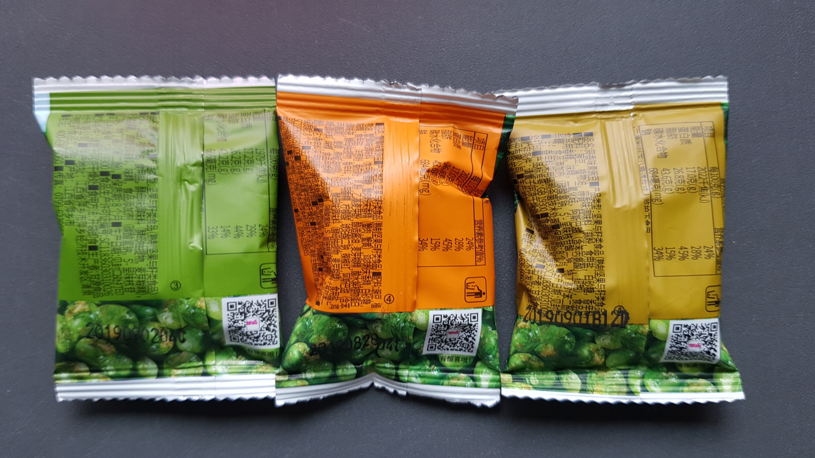 *. 재료: 완두콩, 식물성기름, 식용소금, 조미료 및 첨가제 (세부내역은 하단 이미지 참조) 등