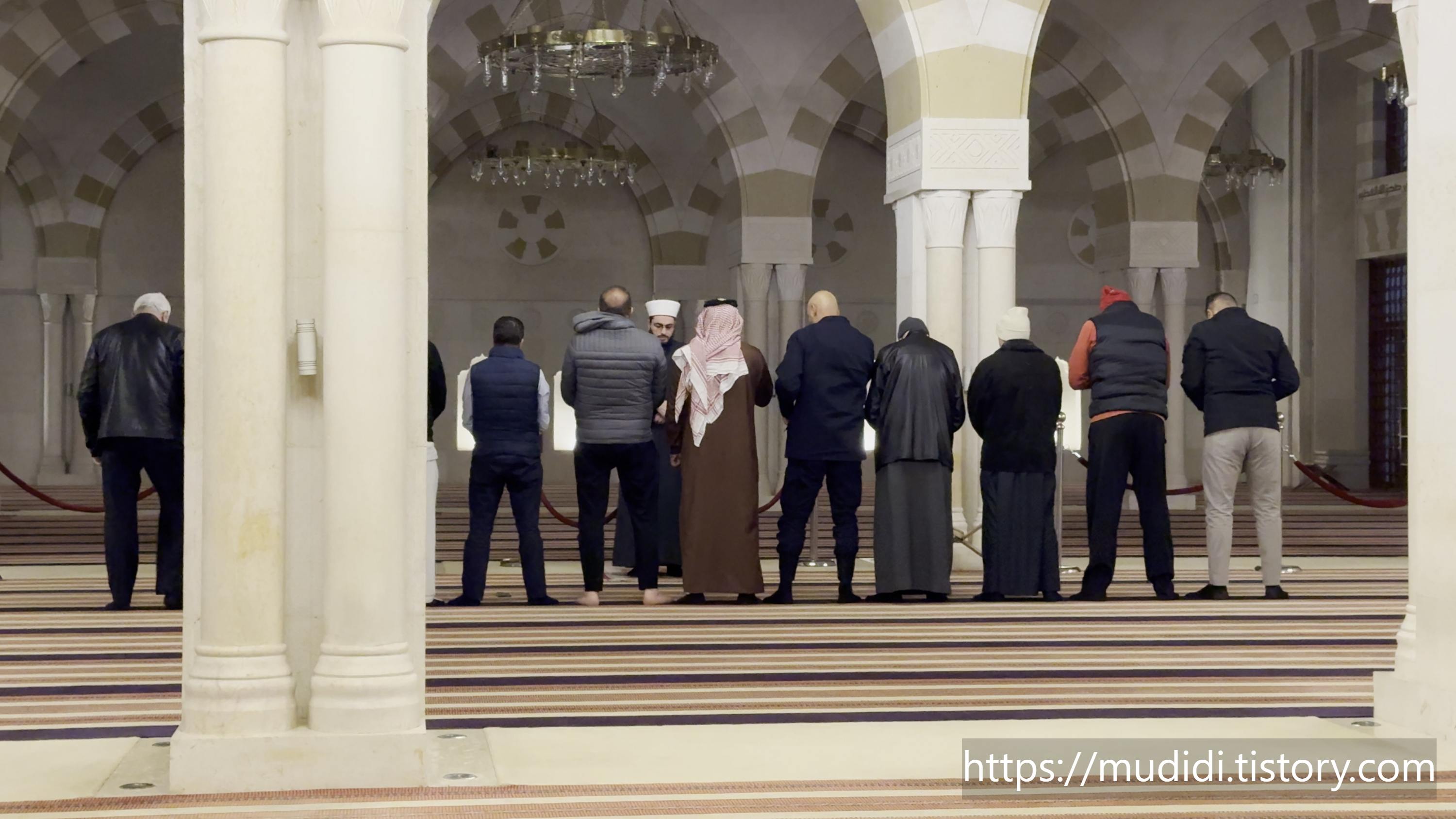 나도 꼽사리 껴서 건물 안, 기도하는 곳에 들어가서 맨 뒤에 있는 의자에 앉아 무슬림들이 기도하는 방식을 구경함.