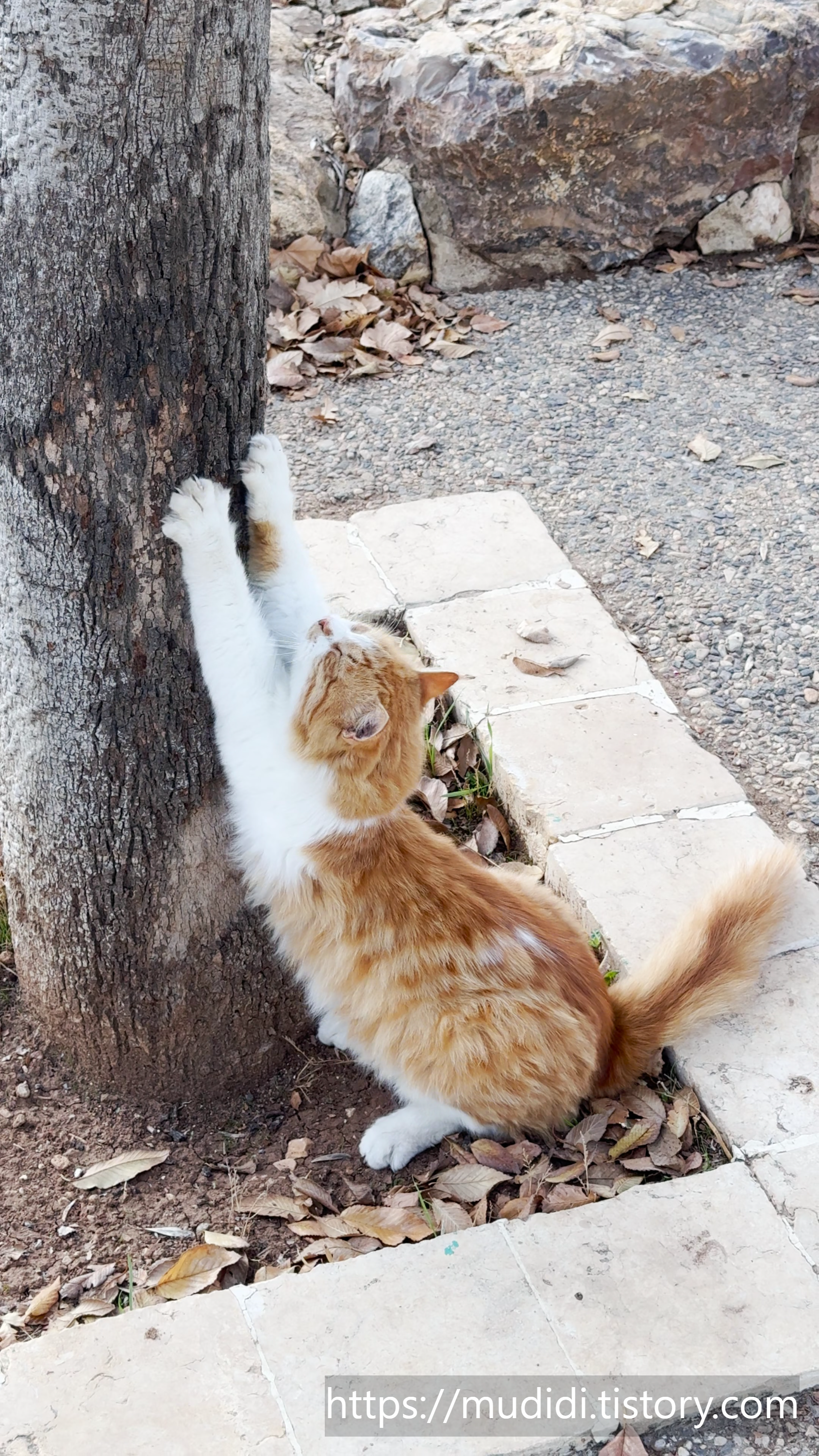 위의 사진은 나와 요르단 친구에게 다가와서 몸을 비비면서 살갑게 하다가 나무로 가서 스크레칭 하다가 스트레칭 하는 모습.. 너무너무 귀여웠다.