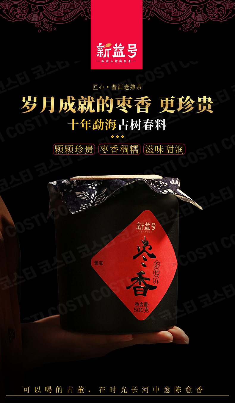 신익호 대추향 차화석 쇄은자 보이차숙차 500g 선물용 운남 맹해 푸얼차 중국전통차 잎차