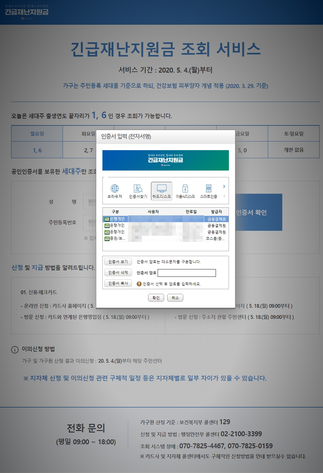 참고로 긴급재난지원금 조회는 5월 4일부터 해당 홈페이지(www.긴급재난지원금.kr)에서 공인인증서를 보유한 세대주만 할 수 있습니다.