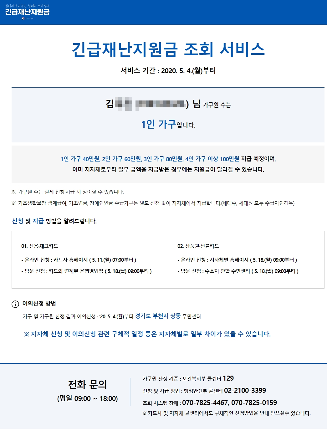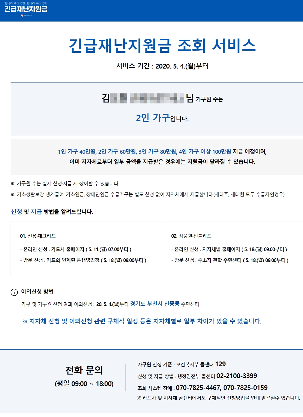 ▶ 신청 및 지급 방법: 행정안전부 콜센터 02-2100-3399