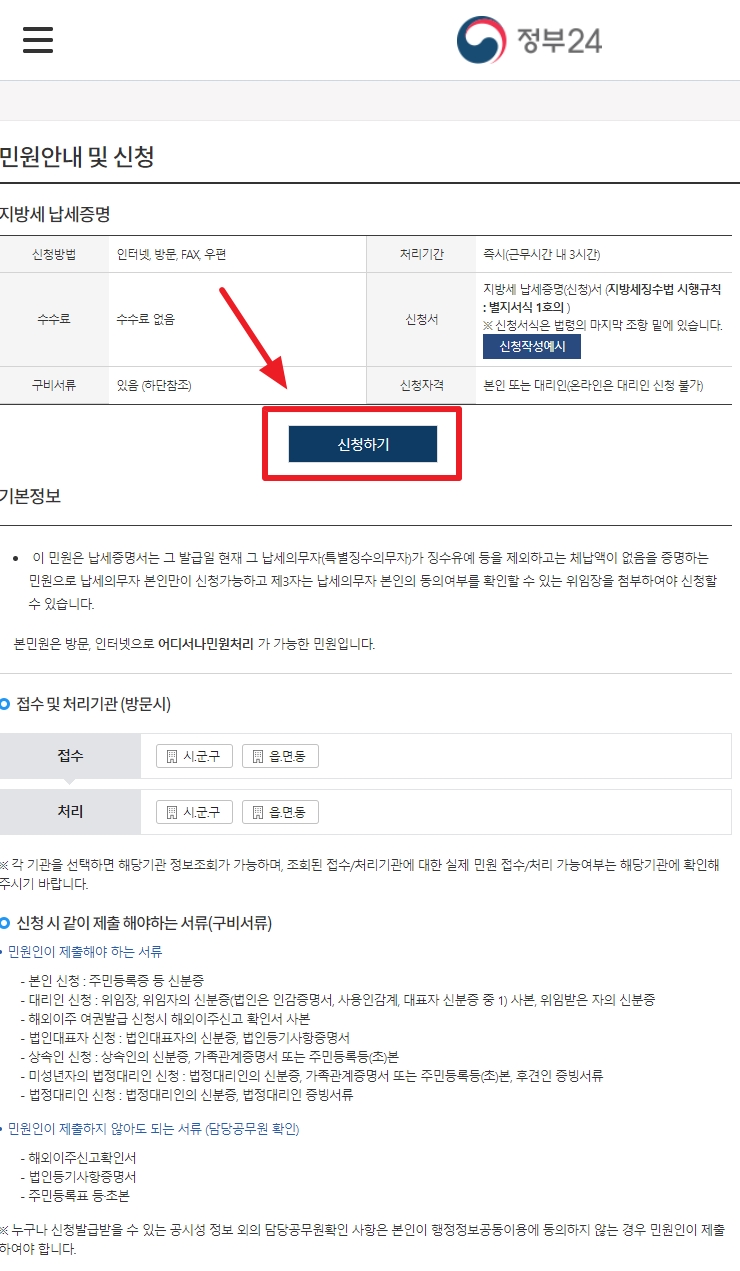 지방세 납세증명 | 민원안내 및 신청 | 민원24 | 정부24